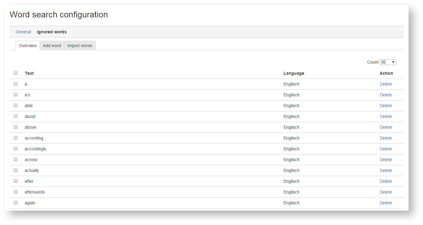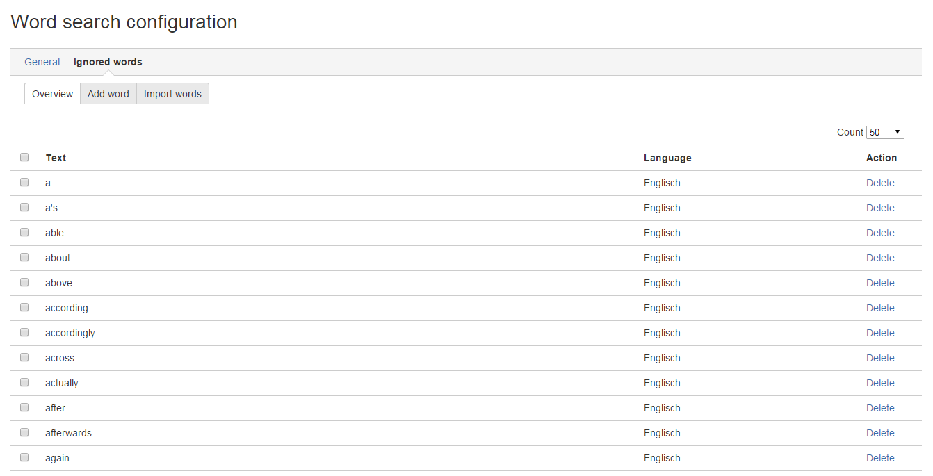 Also German and English use advanced natural language processing, we recommend importing their list of stopwords to further improve suggestions.