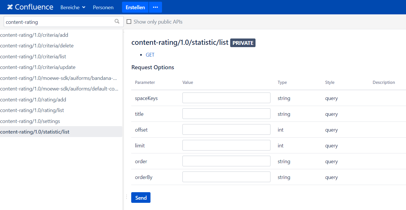 Open the REST API browser: CONFLUENCE_BASE_URL/plugins/servlet/restbrowser/